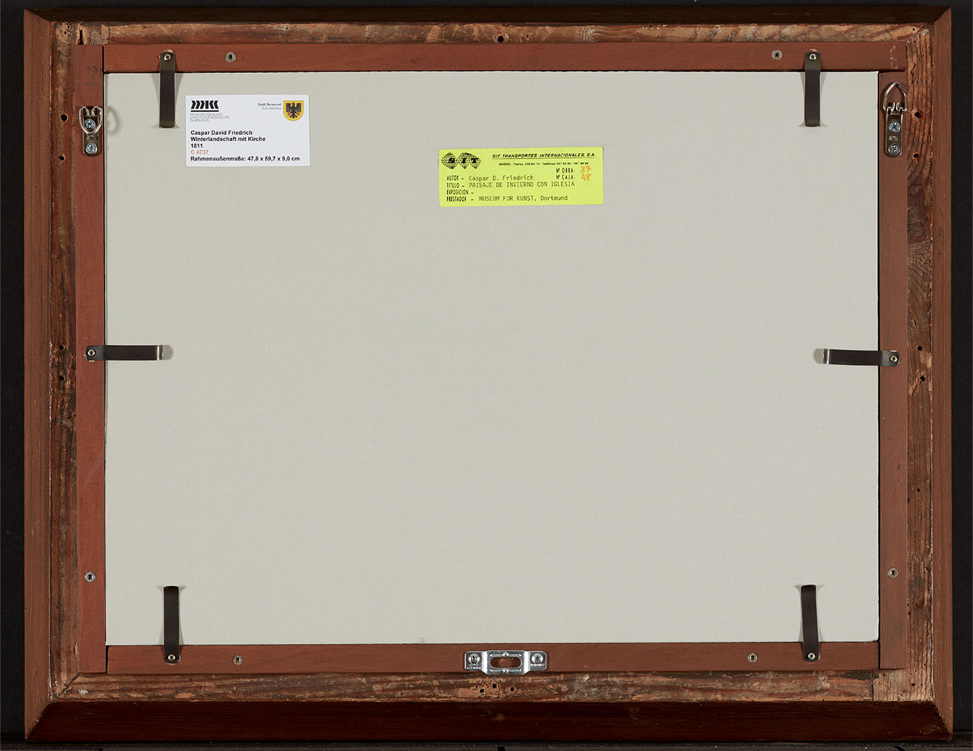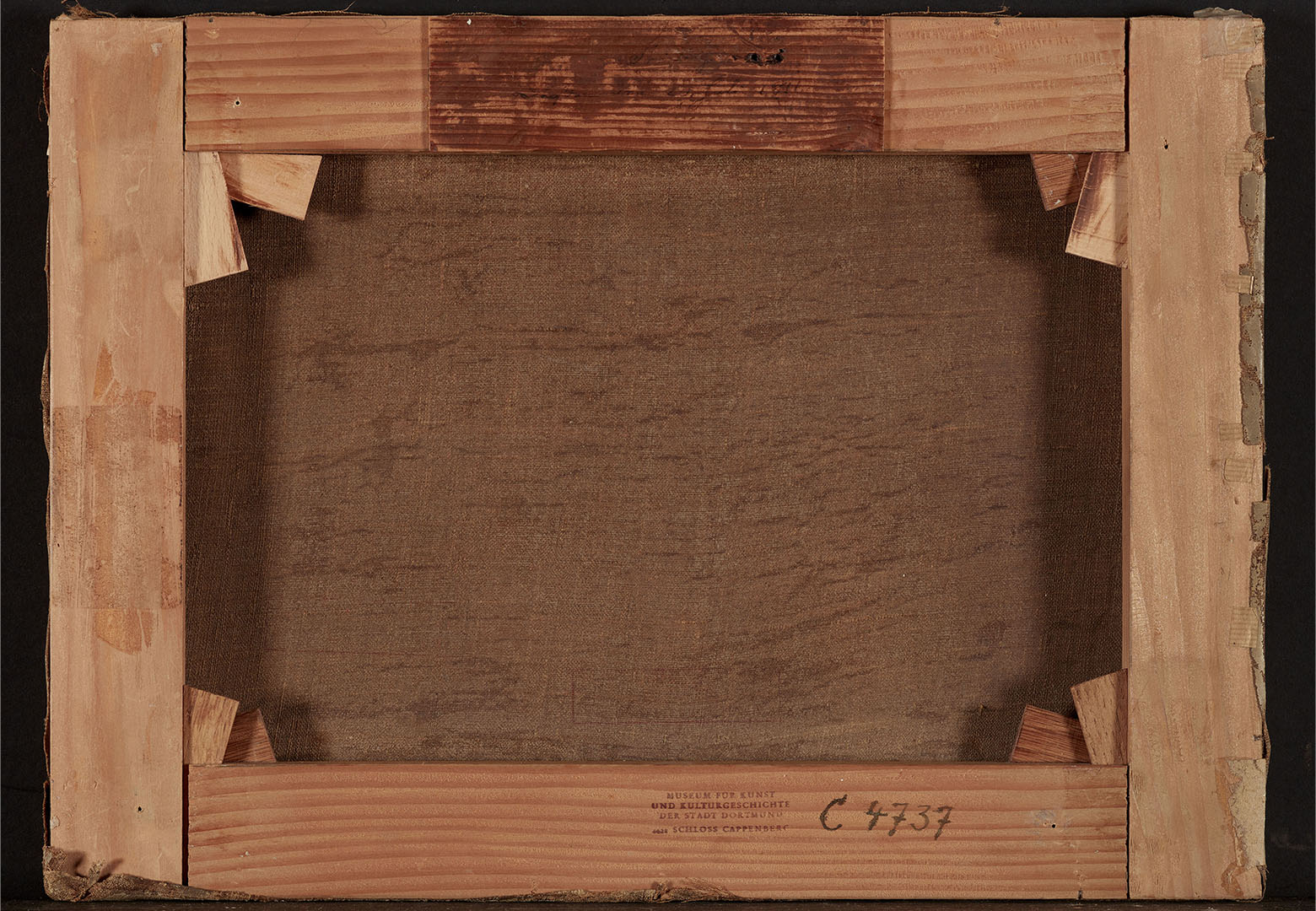 Nach 1945 hat das Gemälde einen neuen Keilrahmen erhalten. Von dem alten zeugt nur noch ein Stück Holz mit der Aufschrift "Friedrich Dresden den 20. Juli 1811".